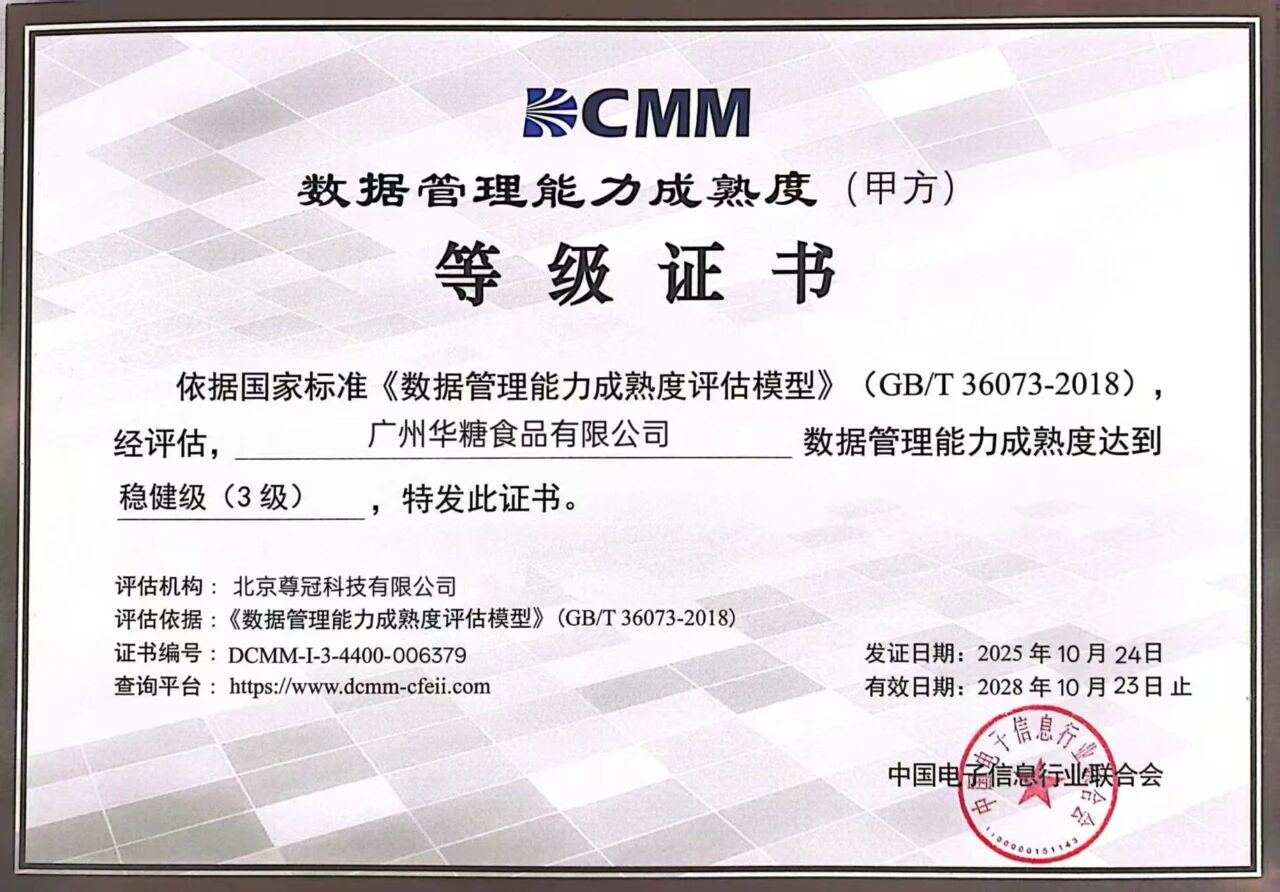 此次认证的通过,是华糖公司数字化转型进程中一个具有历史意义的重要里程碑,标志着公司在数据资产化管理、数字化运营方面迈上了新台阶,也为未来持续创新与高质量发展奠定了坚实的数据基础!